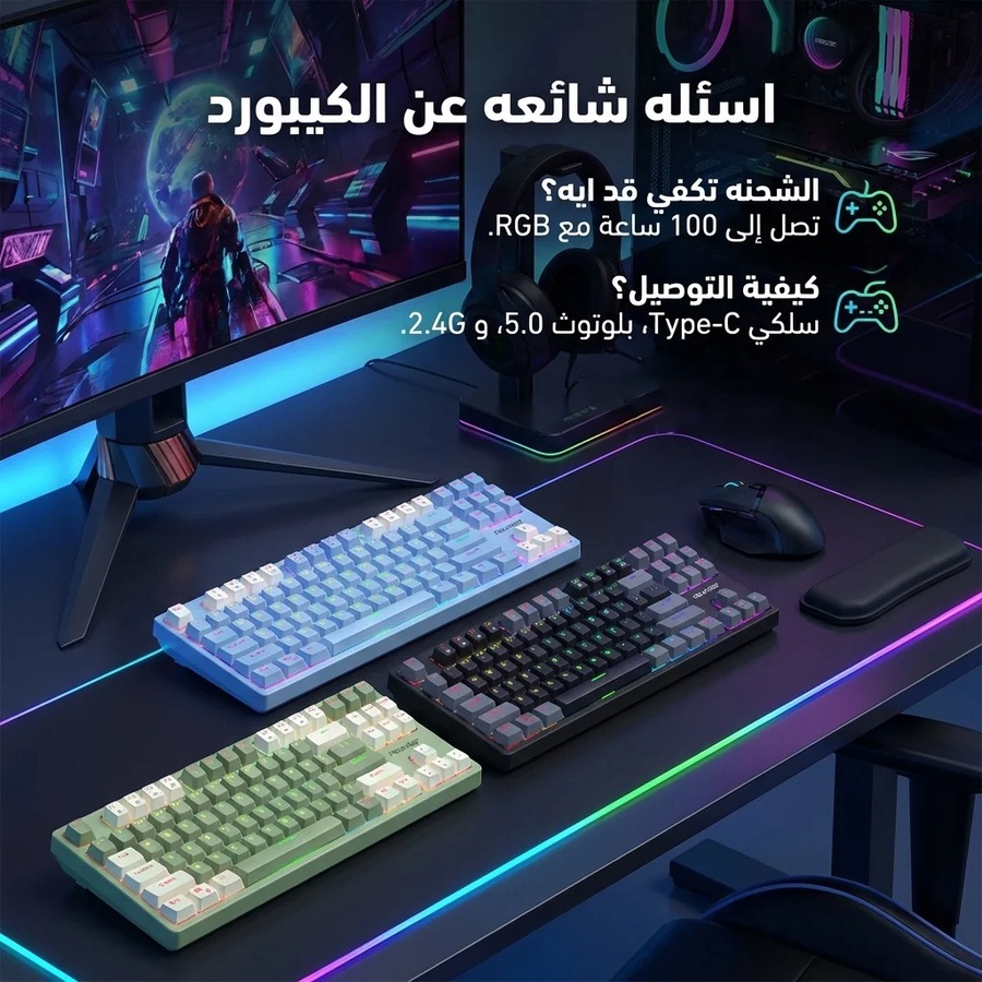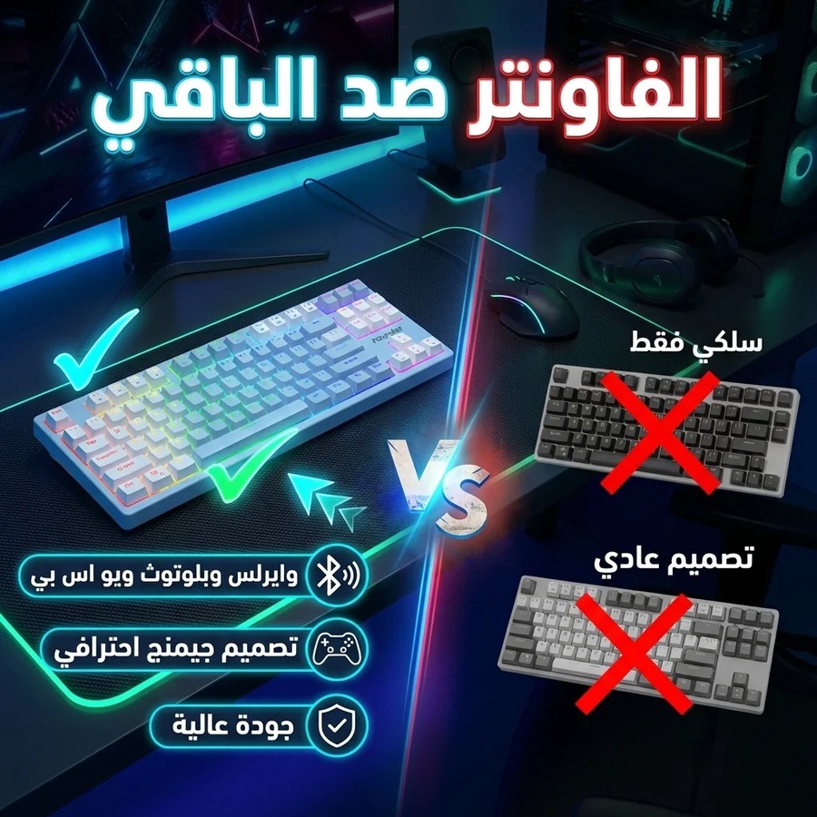 Founder GK87 -Three mode rechargeable Mechanical Keyboard Arabic / English letters
